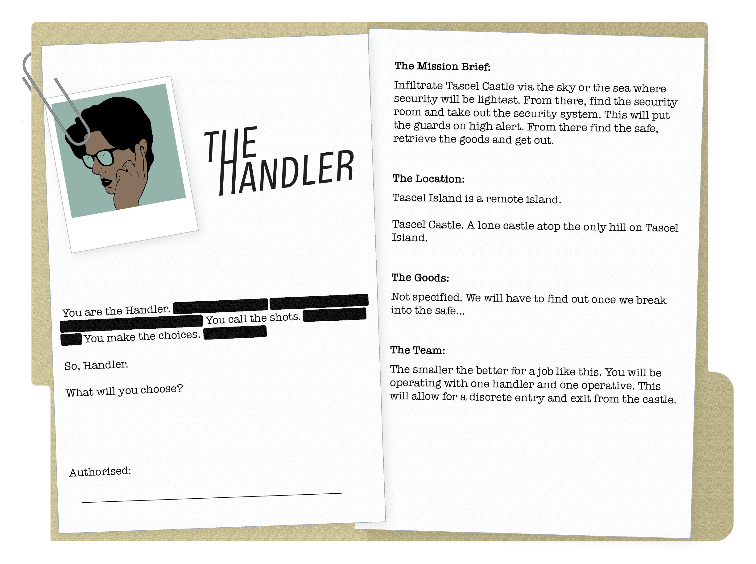The smaller the better for a job like this. You will be operating with one handler and one operative. This will allow for a discrete entry and exit from the castle.